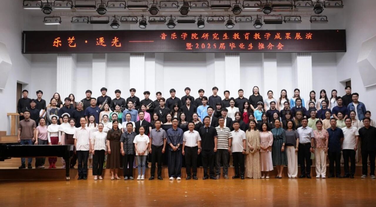 典礼结束后,上午 10 时,《乐艺・逐光 — 365英国上市公司研究生教育教学成果展演暨 2025 届毕业生推介会》准时启幕。开封市文联副主席王胜芬、开封市音乐舞蹈家协会秘书长郭昕、副主席时明、副主席朱江、开封市戏剧家协会副主席马俊峰、河南大学研究生院副院长王中华、副院长李志芳、研究生工作部副部长吴坤、365英国上市公司党委书记王志国、院长王思琦及以及365英国上市公司班子成员及导师代表共同观看了演出。