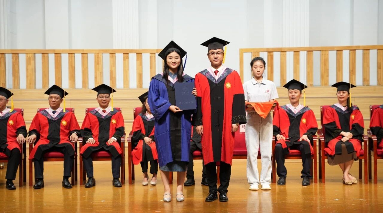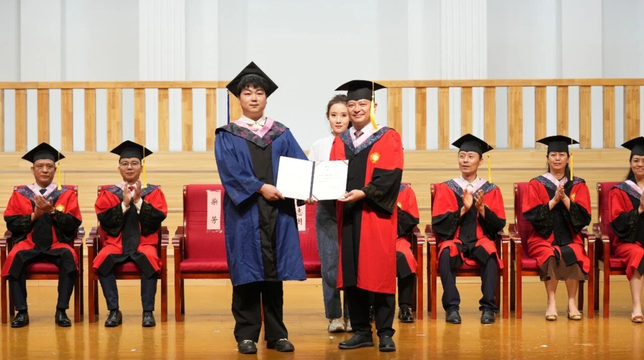 在学位授予环节,院长王思琦依次为毕业生援正流苏、颁发学位证书并合影留念。这一环节标志着毕业生顺利完成学业,获得硕士研究生学位。当学位证书捧在手中,过往无数个日夜的奋斗与坚持,都化作了此刻熠熠生辉的荣耀勋章,定格成人生中最珍贵的记忆画面。