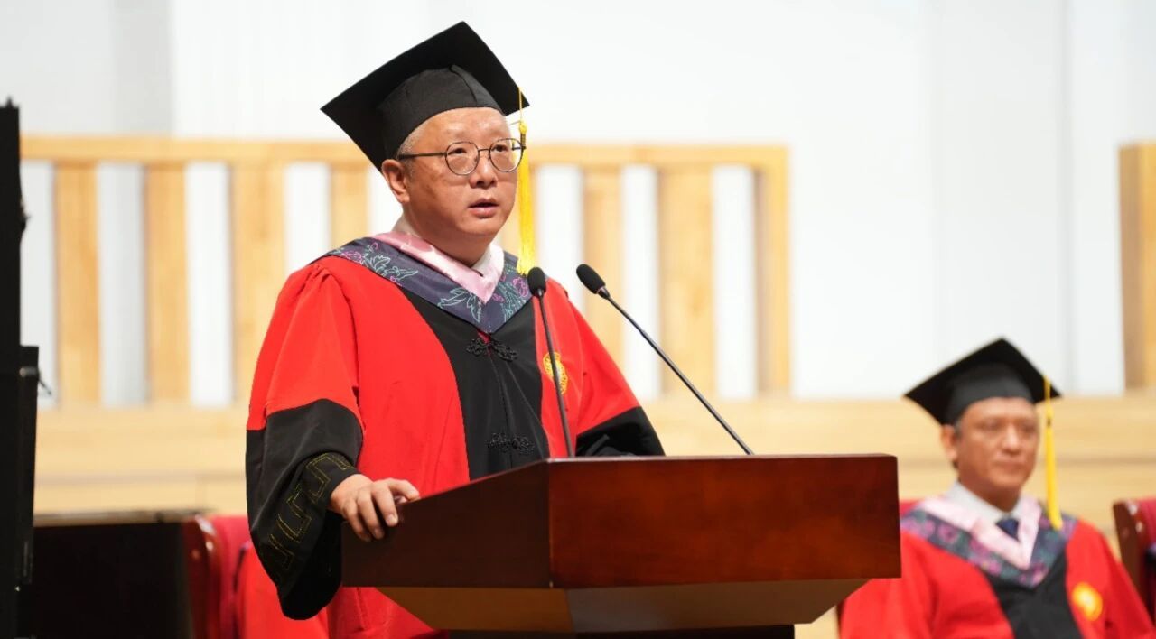 王思琦在致辞中,首先向全体毕业生致以热烈祝贺,向辛勤耕耘的教师们致以崇高敬意。随后,他以“明德新民、止于至善”的校训为引,寄语毕业生秉持“立德、修身、乐艺、践行”的院训,激励毕业生们在未来的人生道路上,以修身为基、以践行为帆,恪守本心,笃行不怠,在各自的领域书写无愧于青春、无愧于母校的精彩篇章。随着《河南大学校歌》的旋律缓缓响起,这场充满温情与感动的毕业典礼落下帷幕。熟悉的曲调,既是对四年求学时光的深情回望,更是迈向人生新征程的激昂号角。