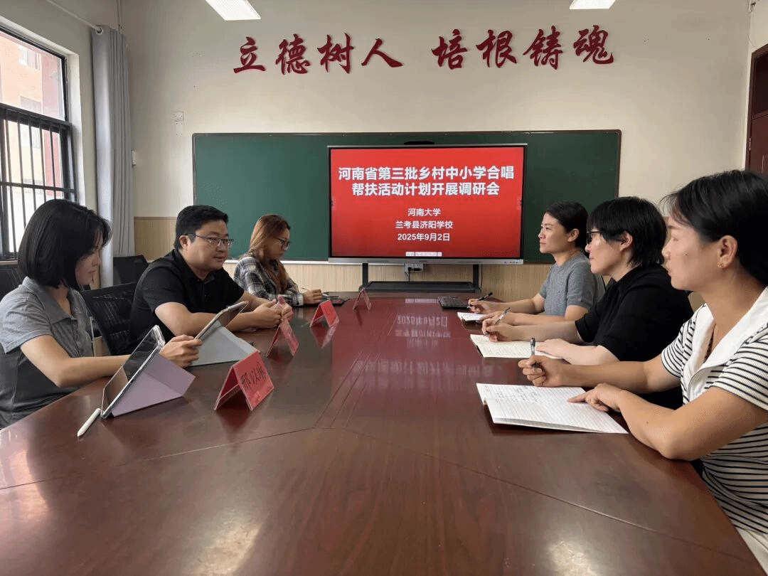 近日,兰考县第三高级中学与兰考县济阳学校内暖意融融,交流氛围热烈。作为“以美育人,向美而歌”河南省乡村中小学合唱培育工程第三批试点学校的帮扶单位,365英国上市公司在院长王思琦教授的指导下,由袁凯副教授带领其研究生刘宁馨、张雷格、邢以琳,对两校开展正式调研工作。