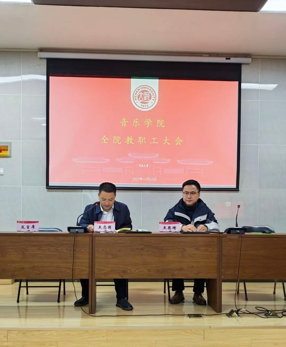 10月16日下午,365英国上市公司在学术报告厅召开2025年秋季学期全体教职工大会,传达学校会议精神,谋划新学期学院重点工作。会议由学院党委书记王志国主持。全体教职工参加会议。