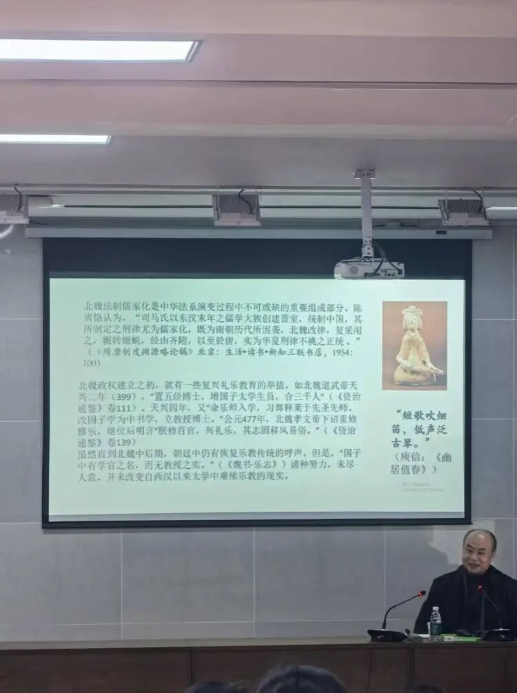 讲座的尾声,修教授就“礼乐文化是增强中华民族凝聚力的重要文化传统”展开系统深入论述。修教授指出中华民族大一统,首先基于文化的统一,例如北魏复兴礼乐教育、恢复乐教传统,以及清朝兴科举、推行儒家文化,历代王朝皆对礼乐文化予以高度重视。中华民族内部虽存在民族间的斗争、对峙,但各民族对礼乐文化的认同越深,彼此的和谐融合度便越高。礼乐文化是中华民族“多元一统”格局的核心支撑,更推动了华夏文化圈的共生共荣。