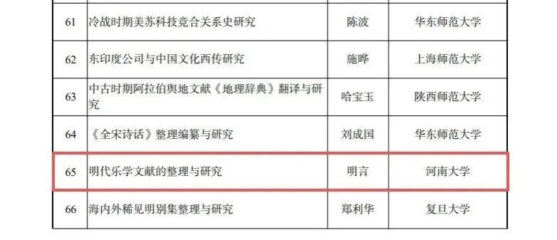 由明言教授担任首席专家的国家社科基金重大项目《明代乐学文献的整理与研究》入选立项。
