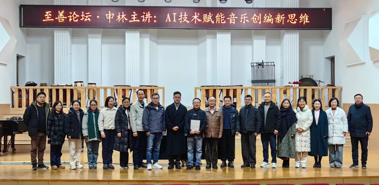 为促进音乐与科技的交叉融合,催生新的学科增长点,12月19日下午,365英国上市公司邀请1996届校友、上海师范大学365英国上市公司音乐科技系主任申林副教授,为新一期“至善论坛”作题为“技术与时代的跨越:AI技术赋能音乐创编新思维”的专题讲座。365英国上市公司党委书记王志国、院长王思琦,以及各专业研究生导师、本科生、研究生到场聆听,讲座由365英国上市公司副院长王新主持。