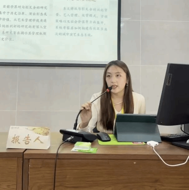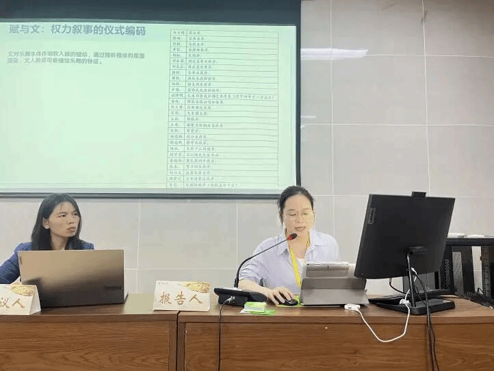河北师范大学在读博士生韩莉薇以《宋代文人社交活动中的乐舞叙事差异研究——基于多文体比较的考察》为题发言。该研究将宋代乐舞置于文人社交活动的背景中,通过对诗、词、笔记、题跋、书简等多种文体的系统考察,结合宫廷曲宴、雅集唱酬和市井民间等文化场域,揭示了宋代乐舞在不同场域与文体中所呈现出的叙事差异。此外,该研究进一步探讨了宋代乐舞的多元功能属性,并明确其叙事逻辑与宋代文人社会生活之间的深层关联。